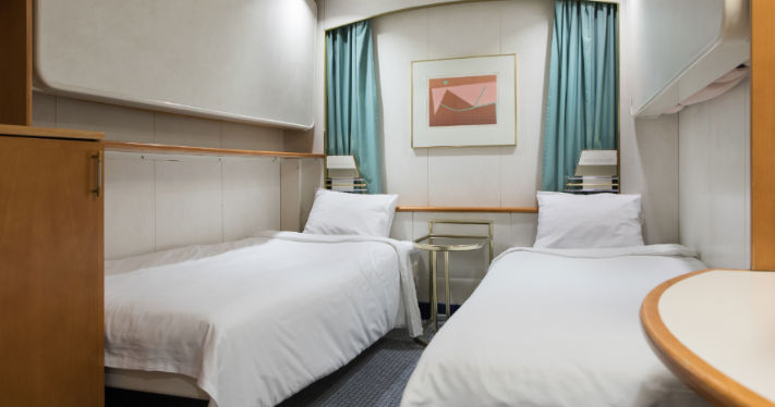 B-hytt (8-11 m2) för upp till 4 personer. Hytterna ligger på däck 5, 9, 10 och 11. I vissa hytter kan de två nedre bäddarna flyttas ihop. Tillgång till djur- och allergivänliga B-hytter finns.
